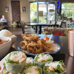 Loved their food. Got the Bangkok rice, mini rolls and drunken noodles and Thai tea (of course!). Food was amazing! Ambience is amazing. The street next is amazing so gives off a good vibe overall.Only thing they need to improve upon js service. There were only ladies working during lunch time. And after they served us food, they were totally busy with their stuff, like we were trying to wave hand so they could see us but nothing. Ultimately we had to go to them on the counter and ask them for water. Please work on your service.